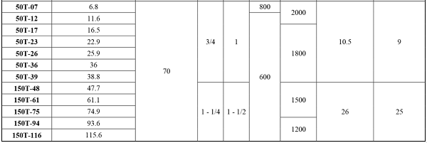 50T-07 /50T-12 /50T-17 /50T-23 /50T-26 /50T-36 /50T-39 /50T-48 /50T-61 /50T-75 /50T- 94 /50T-116